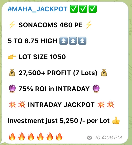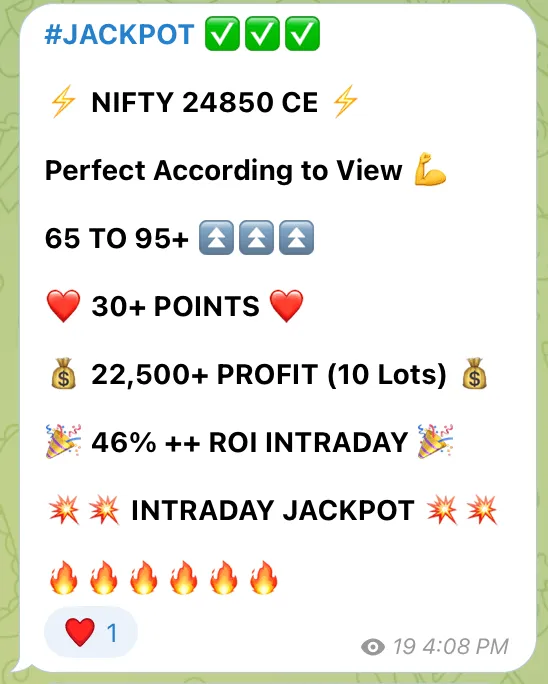 | ✔ Proven Track Record: “Serving the trading community since 2012 with consistent, profitable signals.” ✔ Trusted by Traders Worldwide: “Our system is used by thousands of traders across India and the USA.” ✔ Expert Trading Calls: “Get daily trading calls from market experts directly on Telegram.” ✔ Join thousands of traders worldwide who trust IntradayAFL to make informed, profitable trades. Start trading with confidence today! ✔ No Technical Knowledge Required – Our system does the analysis for you. ✔ Real-Time Buy/Sell Alerts – Get clear entry and exit points with targets and stop-loss levels. ✔ Highly Accurate Signals – Trade smarter with professional-grade insights. ✔ Works Across Markets – Stocks, commodities, Future & Options covered. For Free Buy-Sell Chart: VISIT HERE TradingView Indicator: VISIT HERE Hero Zero Option Calls with 2-5X Profit/Call: VISIT HERE |